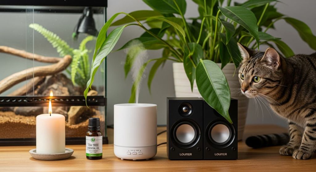 Почему опасно: У змей очень чувствительная хеморецепция (нюх) и ведение запахов с помощью органа Якобсона (когда змея «пробует» воздух языком). Многие химические вещества, которые безопасны для человека, токсичны для рептилий.