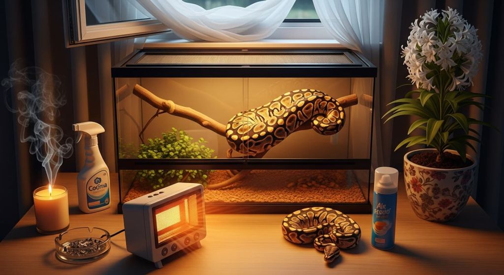 Почему опасно: Змеи — хладнокровные животные, и их организм не приспособлен к резким перепадам температуры. Сквозняк, даже если он кажется незначительным, создает турбулентность воздуха и неконтролируемые колебания температуры внутри террариума.