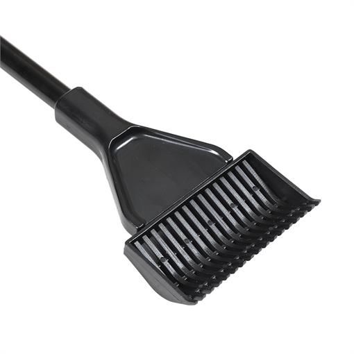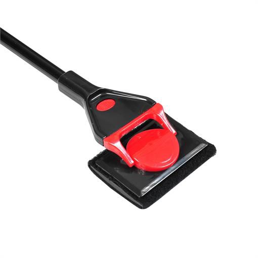 Скребок имеет три насадки (включая насадку с лезвием), позволяющие чистить стекла и разравнивать грунт, оснащен прочной утяжеленной ручкой.