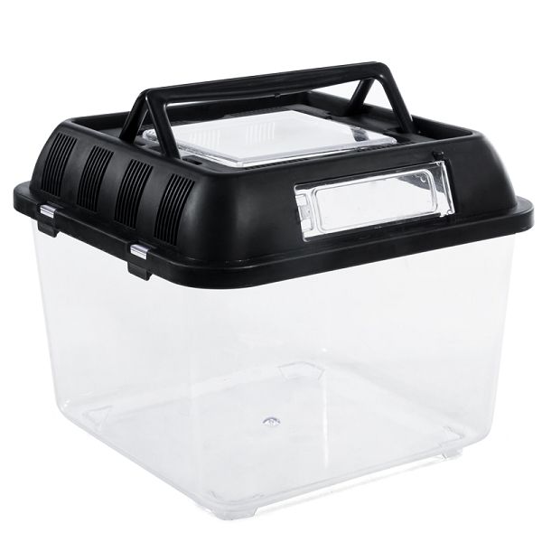 Контейнер для содержания и разведения рептилий является идеальным террариумом для разведения гекконов, змей, лягушек, пауков. Идеален для транспортировки террариумных животных и живых кормов. Имеет специальную дверцу для кормления. Контейнер имеет вентиляционные отверстия и дверцу для легкого доступа на крышке.