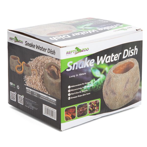 Глубокая, устойчивая, тяжелая поилка рекомендуется для террариумов, где содержатся змеи. Поилка изготовлена из нетоксичной полиэфирной смолы и имеет на поверхности рисунок, имитирующий змеиную кожу. Гладкая внутренняя поверхность не дает возможности к размножению болезнетворных бактерий.