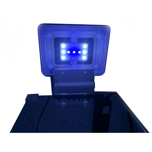 Аквариум изготовлен из качественного стекла, современный и стильный. Укомплектован мощным светодиодным светильником SUNSUN AD-150 с двумя видами светодиодов (синие и белые), крепится на стенку аквариума с помощью надежного крепления. Потребляемая мощность светильника 5 Вт.