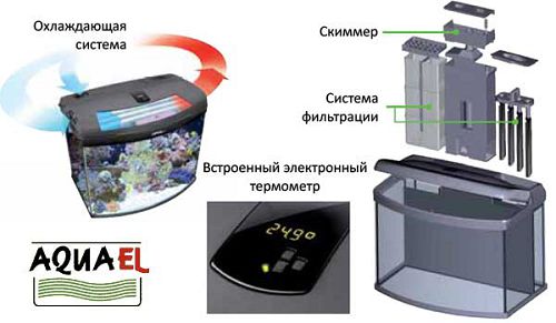 Профессиональное оборудование для запуска миниатюрного кораллового рифа, а также разведения небольших рыб и беспозвоночных обитающих в солёной воде.