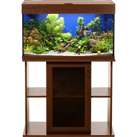 Аквариум LUX П120 прямой, с крышкой и светильником Т8 2×18 Вт, орех, 120 л