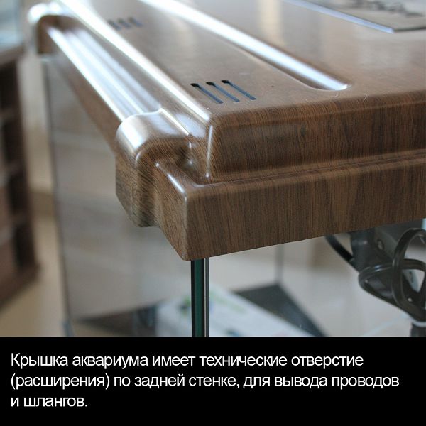 • Крышка аквариума имеет техническое отверстие по задней стенке, для вывода проводов и шлангов.