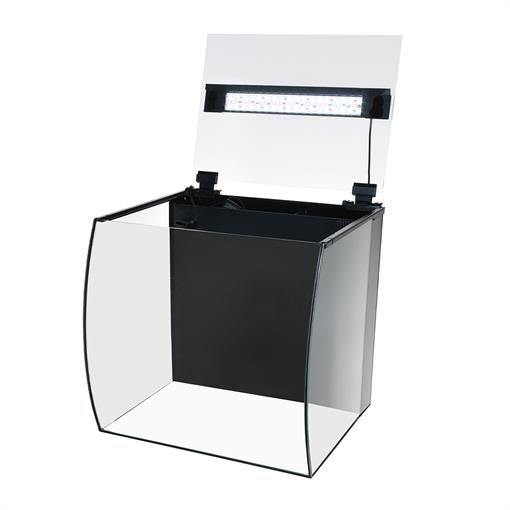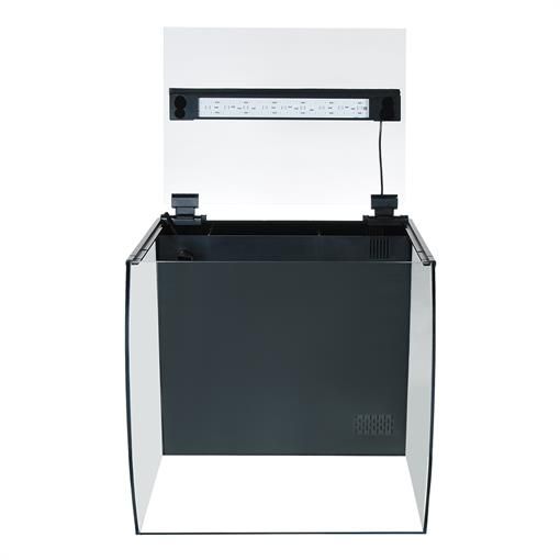 В комплекте аквариума вы найдете: светодиодный RGB светильник с пультом ДУ, специальный задний отсек «псевдосамп» с системой фильтрации и базовым набором наполнителей.