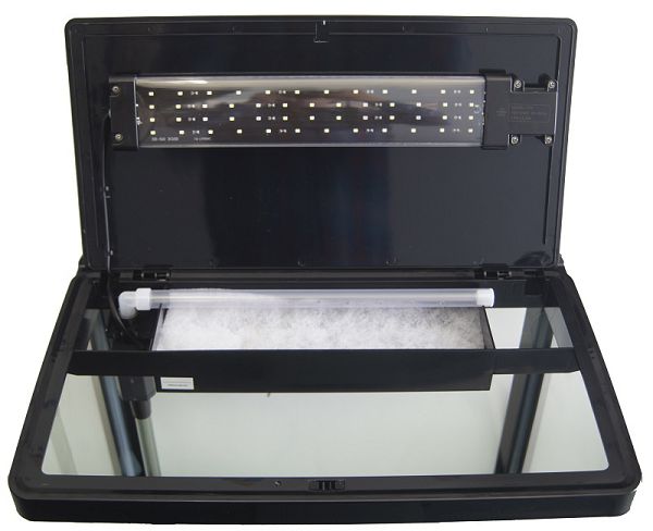 Акваруим имеет П-образное переднее стекло, благодаря чему спереди отсутствуют швы и аквариум визуально становятся больше. Прочная крышка защитит ваш аквариум от попадания посторонних предметов. Крышка имеет защиту от детей.
