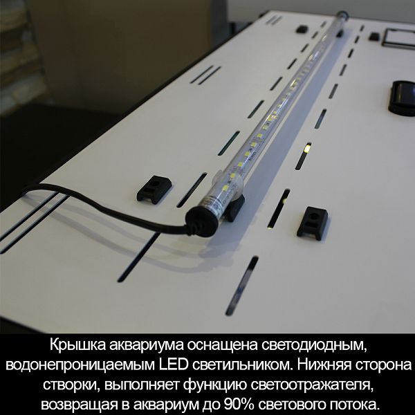 • Крышка аквариума оснащена светодиодным, водонепроницаемым LED светильником;