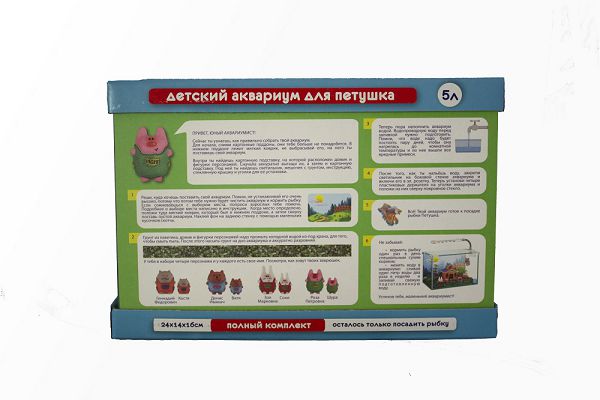 Данный продукт — это отличное решение для первого аквариума ребенку. В комплекте есть всё необходимое для создания комфортных условий Петушку, а так же яркие, красочные декорации, которые понравятся ребенку.