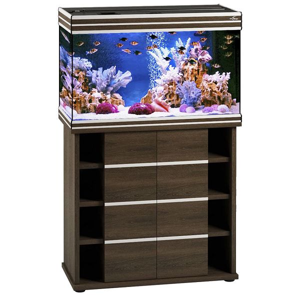 Готовый аквариумный комплекс на 135 литров с оформлением псевдоморе и яркими рыбами. Идеально впишется в современный интерьер как квартиры или загородного дома, так и офисного пространства или кабинета руководителя.