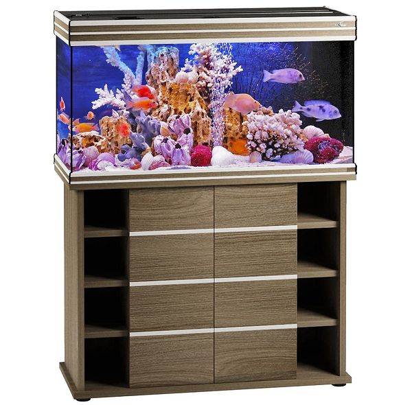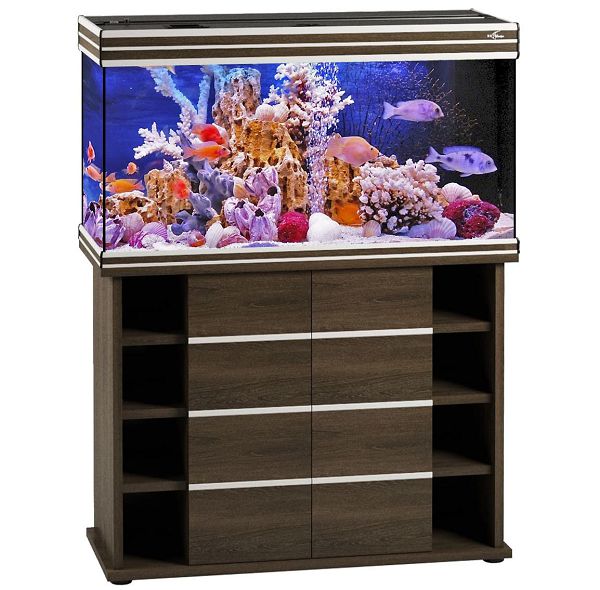 Готовый аквариумный комплекс на 200 литров с оформлением псевдоморе и яркими рыбами. Идеально впишется в современный интерьер как квартиры или загородного дома, так и офисного пространства или кабинета руководителя.