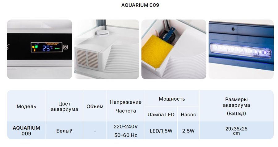 Углы и дно акватеррариума защищены пластиковыми рамками. В откидной крышке находится дисплей, светильник и отверстие для вентиляции.