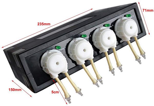 4-х канальная помпа для автоматического внесения в аквариум жидких удобрений и других микроэлементов.