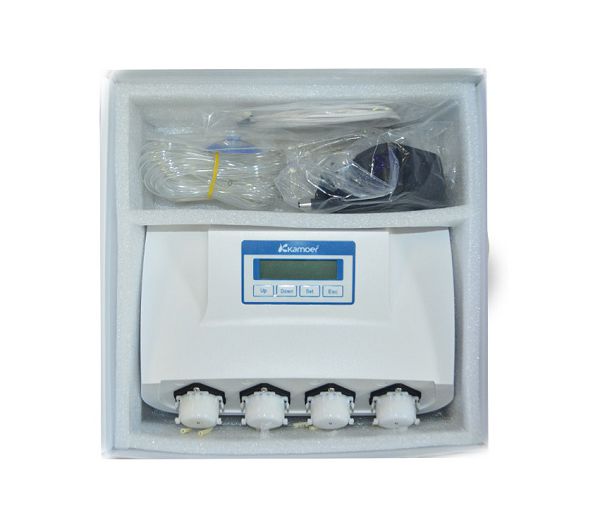 С помощью дозирующей помпы Kamoer X4 Дозирование микроэлементов в морской и рифовый аквариум становится очень удобным и легким. KAMOER X4 — является оптимальной помпой для хоббистов. Благодаря функции Wi-Fi помпой можно управлять при помощи Android или iOS устройства. Наличие сенсора контроля температуры (поставляется в комплекте) и контроля уровня жидкости (приобретается отдельно) позволяет немедленно получать информацию о проблемах с температурой или уровнем жидкости в контейнерах.