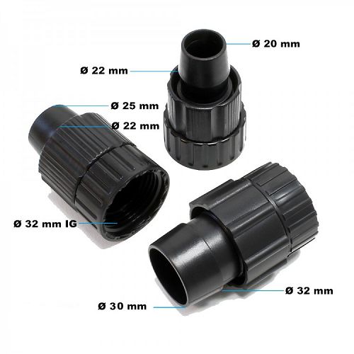 Штуцер для подключения шланга: 25/32/38/50 мм
