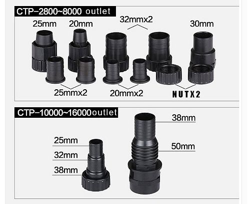 Штуцер для подключения шланга: 25/32/38/50 мм