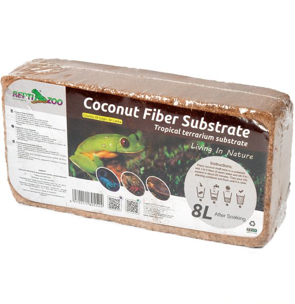 Натуральный субстрат изготовлен из экологически чистого природного материала — измельченных волокон кокосового ореха, спрессованных под давлением в брикеты. Кокосовый субстрат идеален для террариумов, флорариумов, горшечных и садовых растений. Можно использовать в инкубаторах. Прекрасно удерживает влагу, не разлагается и не гниет. Кокосовый субстрат легок в применении — брикет кокосового грунта нужно поместить в емкость с 4 литрами теплой воды, через 20 минут получается 8 литров готового к употреблению грунта. Рекомендуется замена один раз в месяц.