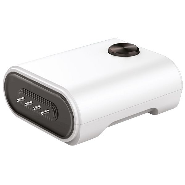 Модель имеет 4 воздушных выхода и оснащена регулятором потока воздуха. Корпус компрессора изготовлен из прочного пластика.