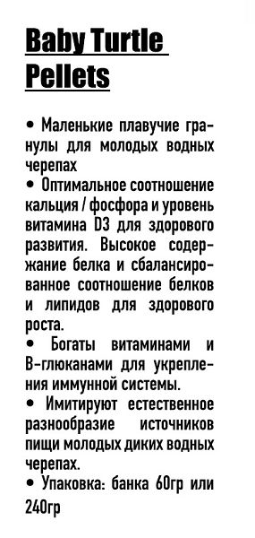 Корм Ocean Nutrition Baby Turtle Pellets для молодых водных черепах, гранулы 60 г