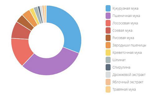 С пшеницей, лососем, шпинатом и спирулиной для энергичных и здоровых кои (при температуре воды 10−25 °C).