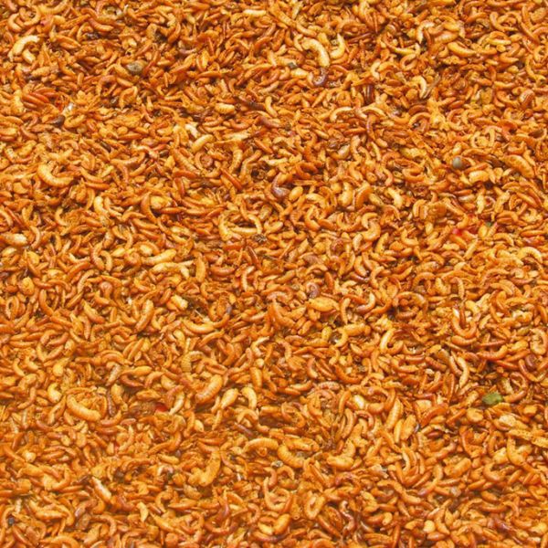 Просеянная и очищенная смесь из небольших пресноводных креветок и насекомых.