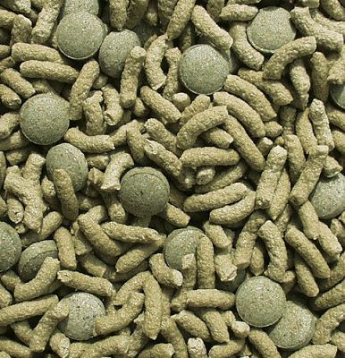 Основной корм, состоящий из кормовых палочек и травяных таблеток, произведенных путем бережной обработки сырья.