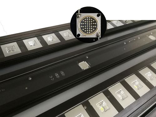 Диоды: 1−3втx48 (620нм*16, 530нм*20, 450нм*4, 12000К*8 ), СOB 6500К 10втх4