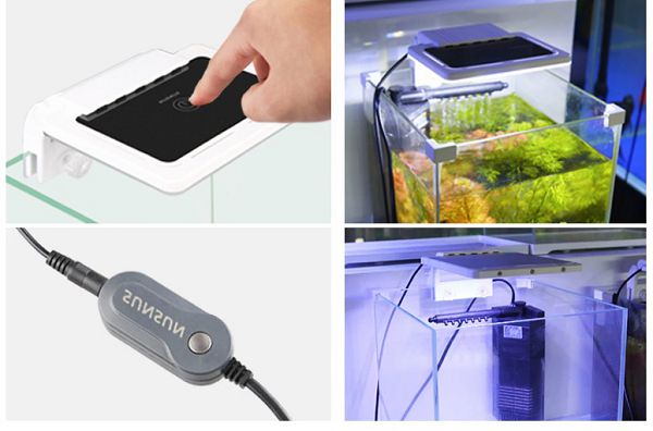 С помощью кнопки в верхней части светильника вы можете переключаться между дневным и ночным режимами. Ночной синий или сумеречный свет в вашем аквариуме особенно способствует естественному поведению креветок и маленьких крабов.