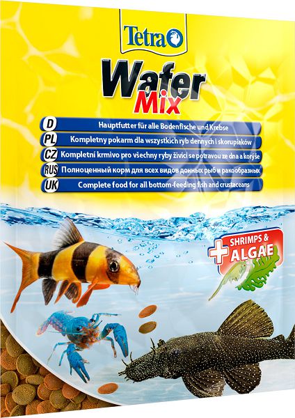 TetraWafer Mix корм для травоядных, хищных и донных рыб с добавлением креветок, пластинки 15 г