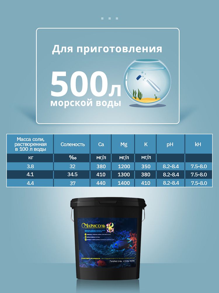 - Сбалансированное количество микро- и макроэлементов создает благоприятные условия для содержания морских рыб, мягких кораллов и прочих беспозвоночных.