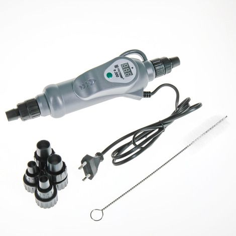Простая установка: перережьте шланг от внешнего фильтра, который подает воду обратно в аквариум, вставьте внешний нагреватель между ними, вставьте заглушку и установите желаемую температуру воды.