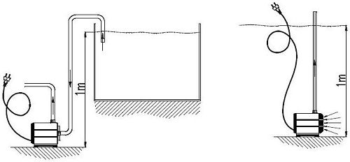 Нежелательна установка вверх дном поскольку в этом случае внутри помпы может образовываться воздушный пузырь, ведущий к перегреву.