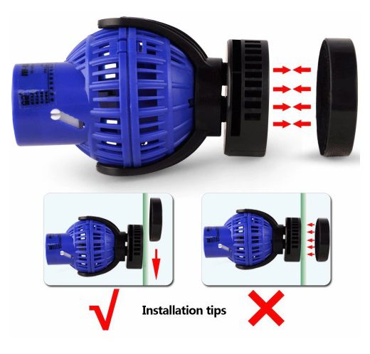 Благодаря мощному магниту помпу можно легко установить на стенке аквариума. Помпы течения важны в аквариуме и особенно для морских аквариумов, поскольку кораллам и некоторым видам рыб нужна естественная циркуляция воды, подобная той, которая встречается в природе. Помпы эффективно имитируют эту естественную циркуляцию в аквариуме. Многие помпы установлены противоположным образом, чтобы создать «диффузный поток». Потоки, создаваемые помпами течения, предотвращают накопление нежелательного осадка на дне аквариума.