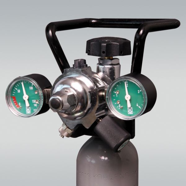 Регулирует давление, понижая его с 60 бар в баллоне до 1,5 бар на выходе. Требуемое количество пузырьковколичество CO2 настраивается на игольчатом клапане.