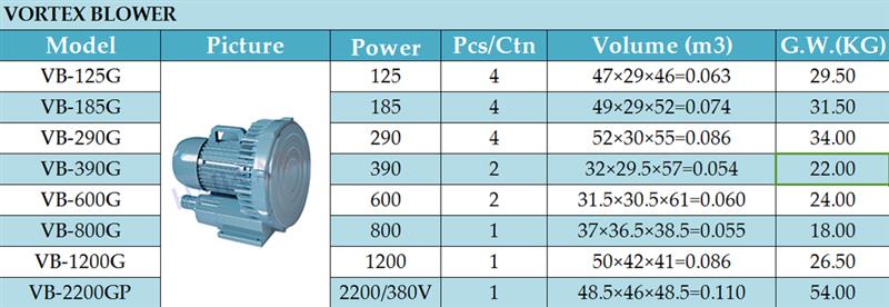 Вихревой компрессор в отличие от мембранных и поршневых имеют гораздо большую производительность и используются для аэрации в больших очистных сооружениях и водоёмах. Импеллер обладает трехмерной системой, вместе с секционными изменениями в круговых потоках воздуха, что обеспечивает воздушную струю и низкий уровень шума.