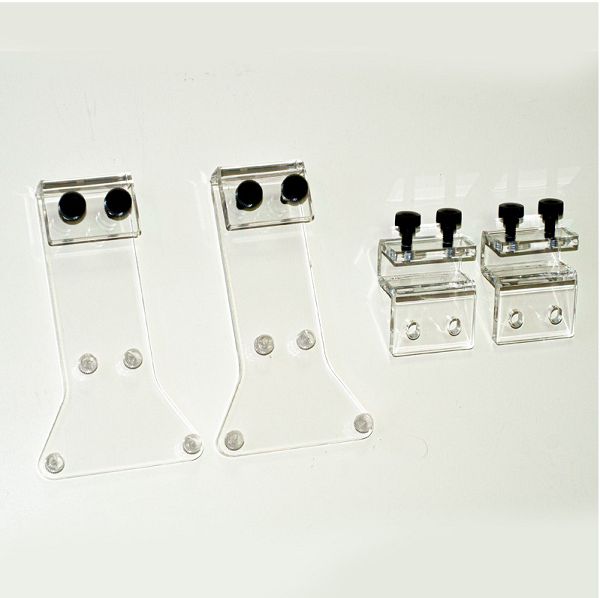 - Держатель для крепления на вертикальных и горизонтальных стеклянных планках.