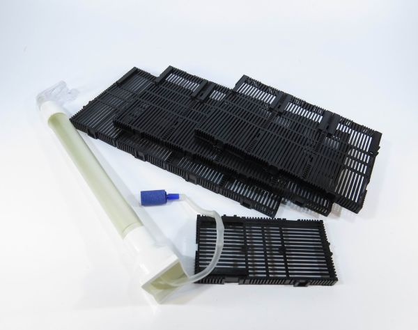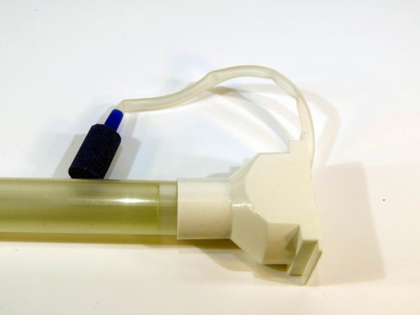 Чтобы сделать работу фильтра еще более эффективной, можно вместо аэрлифтного движения воды по трубке, присоединить к верхнему оголовью трубки, идущей в комплекте, дополнительную помпу. Помпу Вы можете подобрать исходя из необходимой производительности, с аэрацией и без.