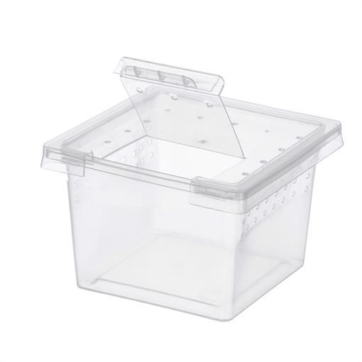 В стенках отсадника сделаны вентиляционные отверстия. А крышка имеет отдельно открывающийся маленький лючок для кормления. Идеально подходит для содержания и продажи насекомых и детенышей рептилий.