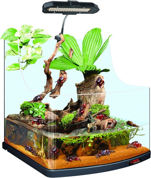 Полностью укомплектованный аква-террариум для содержания маленьких водяных черепах, крабов и раков.
