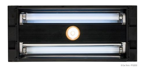 Пригоден для установки двух флуоресцентных ламп Exo Terra Repti Glo и одной или двух ламп Exo Terra Sun Glo Halogen Spot.