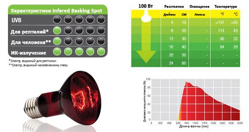 Лампа имеет специально сконструированный отражатель для точечного прогрева выбранного участка. Красное стекло пропускает инфракрасные волны, продуцируемые специальной спиралью. Красный свет не нарушает нормальной активности в течение дня или ночи и поэтому лампa может быть использована как источник тепла 24 часа в сутки.