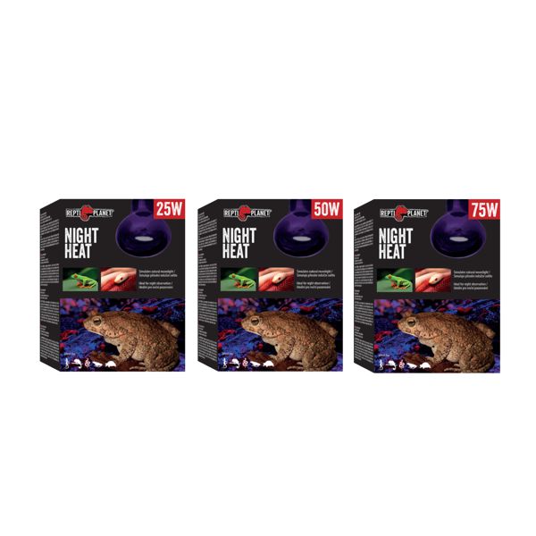Лампа REPTI PLANET Night Heat симулирует природный лунный свет и является идеальной в комбинации с дневными обогревающими лампами (например, Repti Planet Infrared Heat, Daylight Basking Spot, Daylight Frosted, Daylight Neodymium или Far Infrared Heat). Интенсивность теплового излучения меньше, что является идеальным по причине естественного падения ночных температур в природе. Окрашивание достигается благодаря синему цвету стекла.