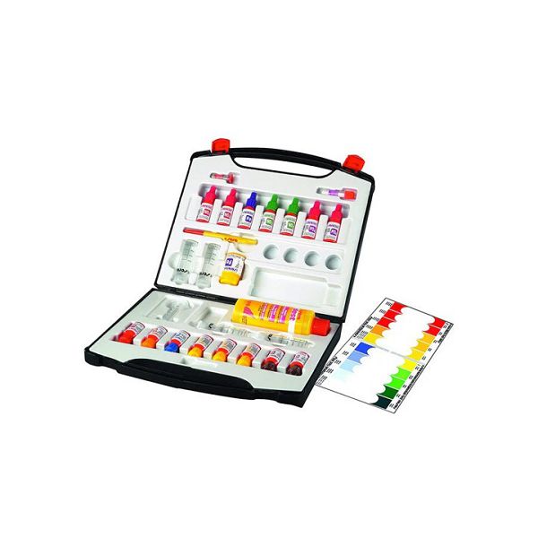 Тестирование воды для владельцев пруда. Опытный владелец пруда проверяет воду в своем пруду регулярно. Это позволяет предпринять предупредительные меры против, например, водорослей, быстро и просто, без необходимости применения химикатов. sera кои аква-тест бокс содержит следующие тесты для определения: pH-уровня общего уровня жесткости карбонатной жесткости аммония/аммиака нитритов нитратов фосфатов уровня содержания железа уровня содержания меди
