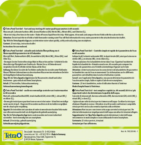 TetraPond Quick Test 6in1 набор экспресс-полосок для быстрой проверки показателей качества воды