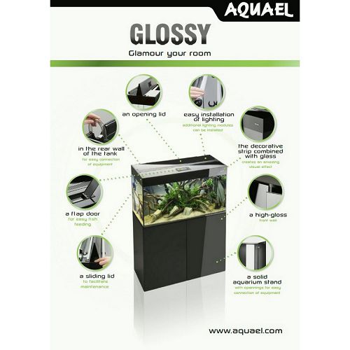 Аквариумные комплексы GLOSSY прекрасно гармонируют с современным интерьером и являются оригинальным элементом дизайна, ведь дополнительно можно приобрести специализированную тумбу с дверцей с акриловым покрытием, идеально сочетающуюся с аквариумом.