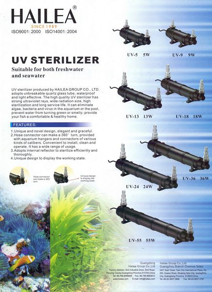 Стерилизаторы Hailea являются надежными помощниками в борьбе против различных опасных загрязнений аквариума и пруда от нежелательных водорослей. Позволяют эффективно справляться с проблемами поддержания аквариума или пруда в идеальном состоянии.