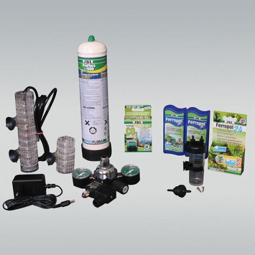 В систему входят: надежный сменный СО2-баллон 500 г, редуктор, электромагнитный клапан для отключения подачи СО2, СО2-реактор JBL Taifun 190 мм, специальный СО2-шланг 2 м, обратный СО2-клапан, тестовый комплект для контроля значения рН и содержания СО2.