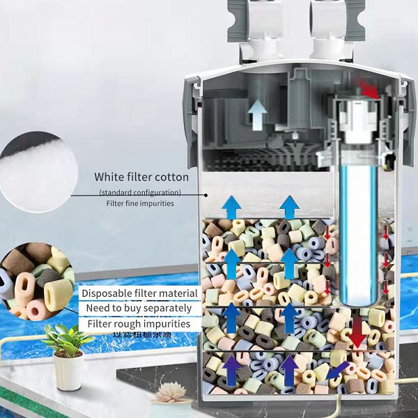 Высокоэффективная фильтрация для более быстрого разложения вредных веществ и длительной эксплуатации; механическое, биологическое, адсорбционное и химическое. С износостойким керамическим валом, увеличенный срок службы. Простая очистка компонентов биохимической среды для защиты от размножения бактерий.