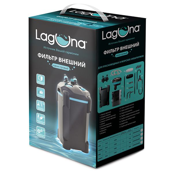 Фильтр Laguna 1408 внешний, 17 Вт, 1400 л/ч, до 140 л, 230х230×485 мм