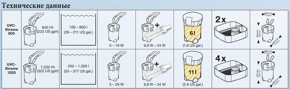 Благодаря встроенной лампе UV-C с амальгамой срок их службы увеличивается до 42%, а их производительность более чем на 52% по сравнению со стандартной UV-C. До 93% болезнетворных микроорганизмов и водорослей в аквариуме удаляются. Электронно-регулируемая производительность может быть отрегулирована в соответствии с требованиями и, следовательно, особенно энергосберегающая, высокая производительность насоса уже достигается при 5 Вт.